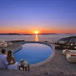 Goście mają dostęp do pełnowymiarowej kuchni z kuchenką mikrofalową, lodówką i szklanymi naczyniami oraz minibarem i urządzeniem do parzenia kawy/herbaty. Restauacja Aperanto Galazio, w której serwowane są specjały kuchni europejskiej, leży w nie więcej niż 1 km. Na lotnisko Mykonos można dojechać z willi w 10 min.